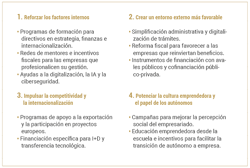 Las conclusiones son claras: somos un país de pequeñas y medianas empresas, con un alto dinamismo emprendedor, pero con un déficit estructural de tamaño que limita la productividad, la innovación y la competitividad.