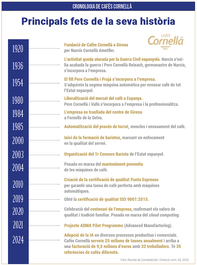 Cafès Cornellà és un exemple de com una empresa centenària pot reinventar-se i liderar la innovació en un sector tradicional com el del cafè. La seva aposta per la tecnologia i la transformació digital ha permès integrar la intel·ligència artificial en processos clau com la traçabilitat, l’optimització comercial i la personalització dels serveis, per millorar tant l’eficiència com l’experiència del consumidor.